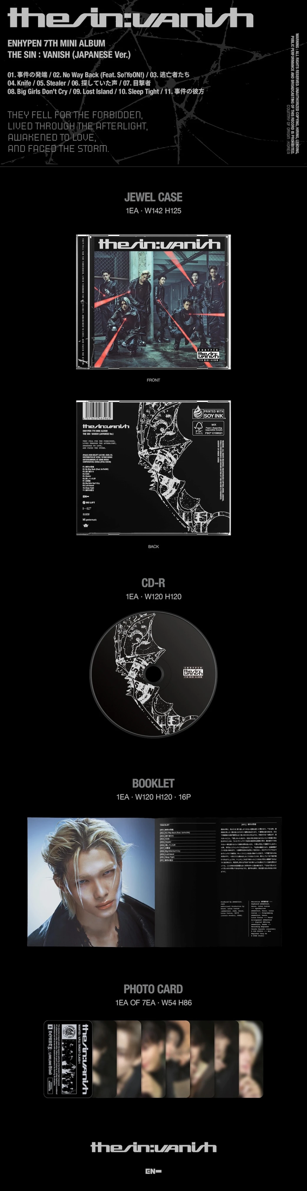 【ENHYPEN 7th Mini Album『THE SIN : VANISH (JAPANESE Ver.)』商品詳細】